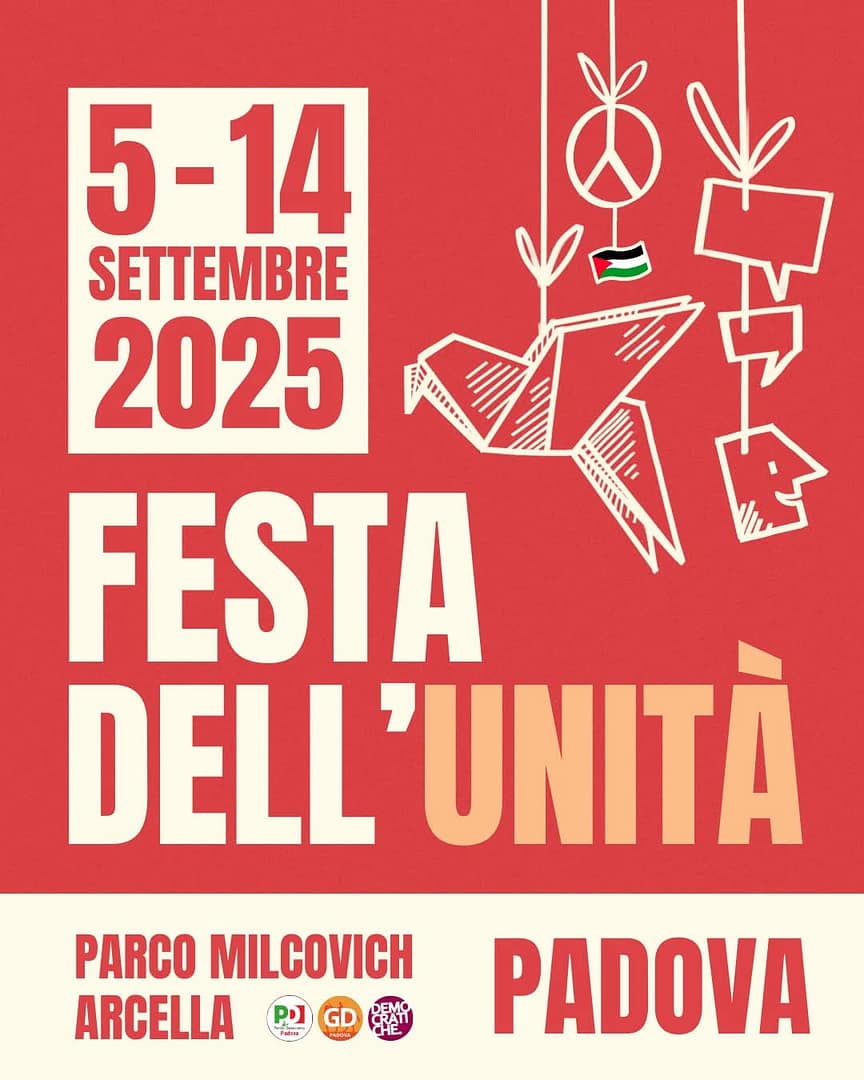 Da venerdì 5 a domenica 14 settembre vi aspettiamo al Parco Milcovich per la Festa dell’Unità di Padova.