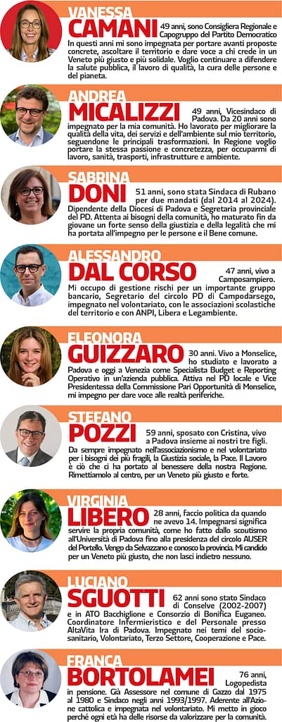 I nove candidati PD della provincia di Padova